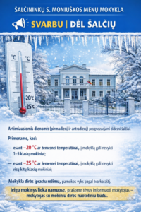 Dėl ugdymo organizavimo esant šalčiams (2026 m. vasario 2, 3 d.)