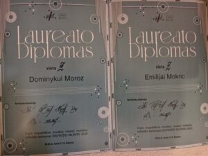 Džiaugiamės jūsų pasiekimais ir atkakliu darbu. Linkime dar daugiau kūrybinių laimėjimų, įkvėpimo ir ryžto būsimuose konkursuose!