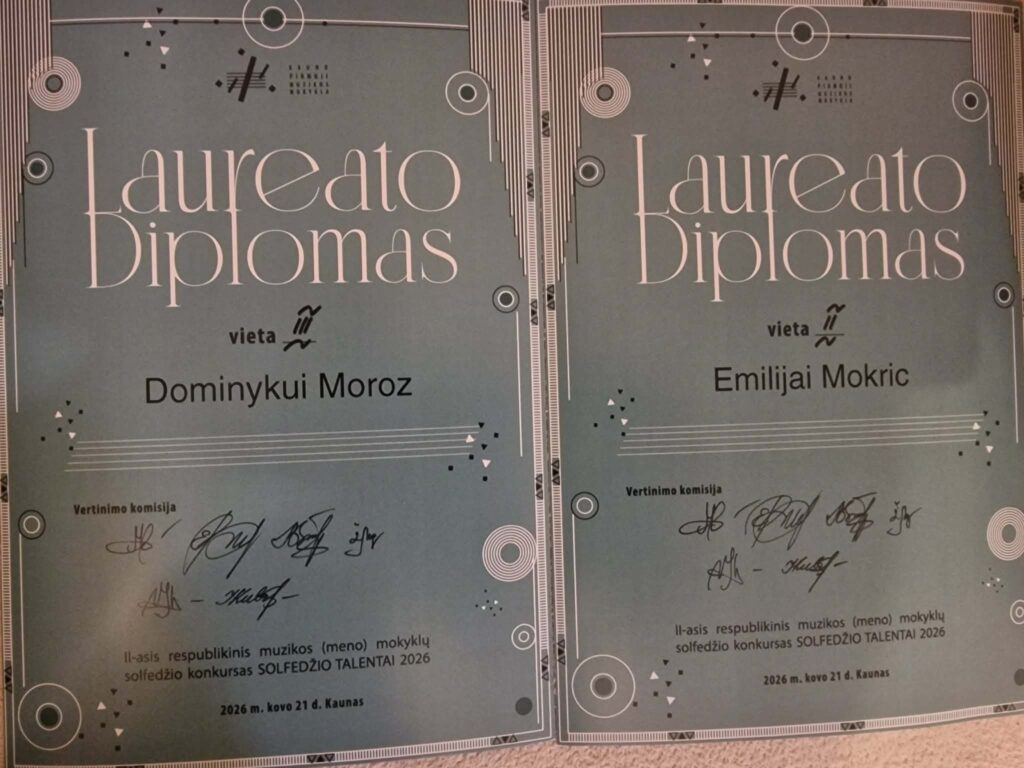 • Mokinių sėkmė respublikiniame solfedžio konkurse „Solfedžio talentai 2026“