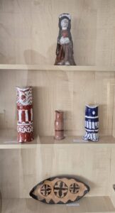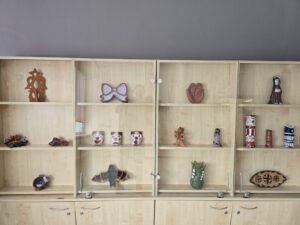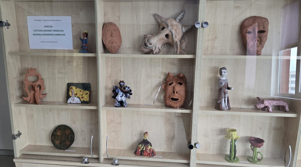 Ekspozicijoje pristatomi įvairiais metais sukurti mokinių darbai, atspindintys lietuvių liaudies tradicijų įvairovę – nuo keramikinių indų formavimo ir puošybos tradiciniais ornamentais iki Užgavėnių kaukių, reljefų bei šventųjų skulptūrėlių interpretacijų. Liaudies meistrai šias skulptūrėles dažniausiai droždavo iš medžio, o mokiniai jas kūrybiškai perkėlė į molį, suteikdami tradicijoms savitą meninį skambesį. Paroda – gražus įrodymas, kad visa, kas sukurta iš širdies ir su pagarba tradicijai, neturi senaties termino. Kūriniai ir šiandien džiugina žiūrovus, liudydami gyvą ryšį tarp praeities paveldo ir jaunųjų kūrėjų šiuolaikinės interpretacijos.