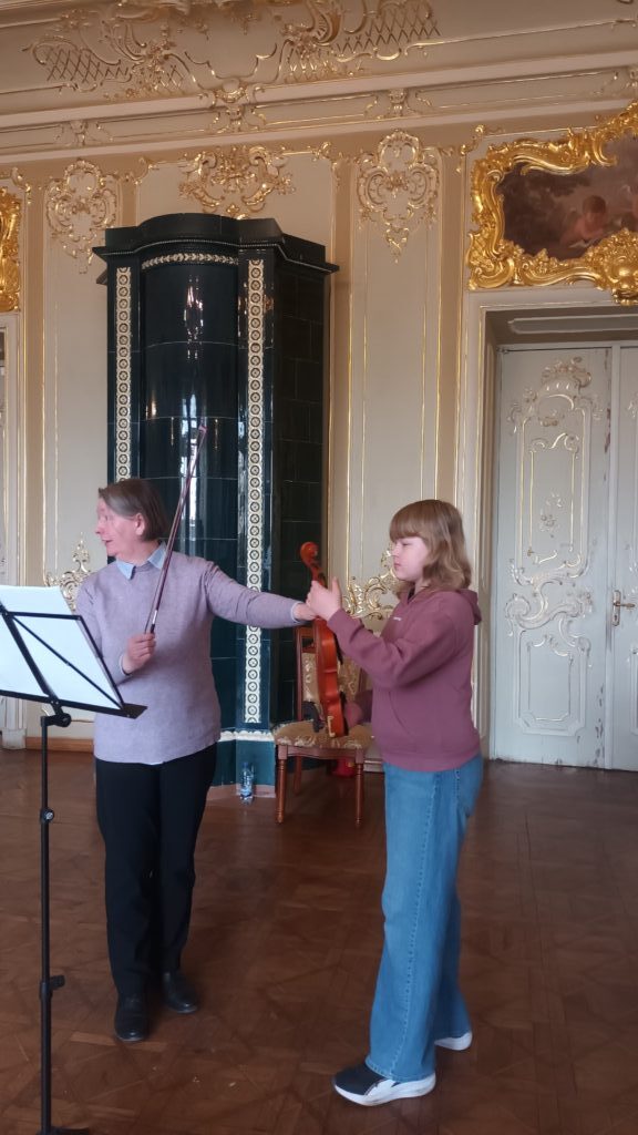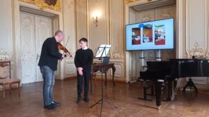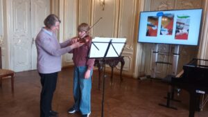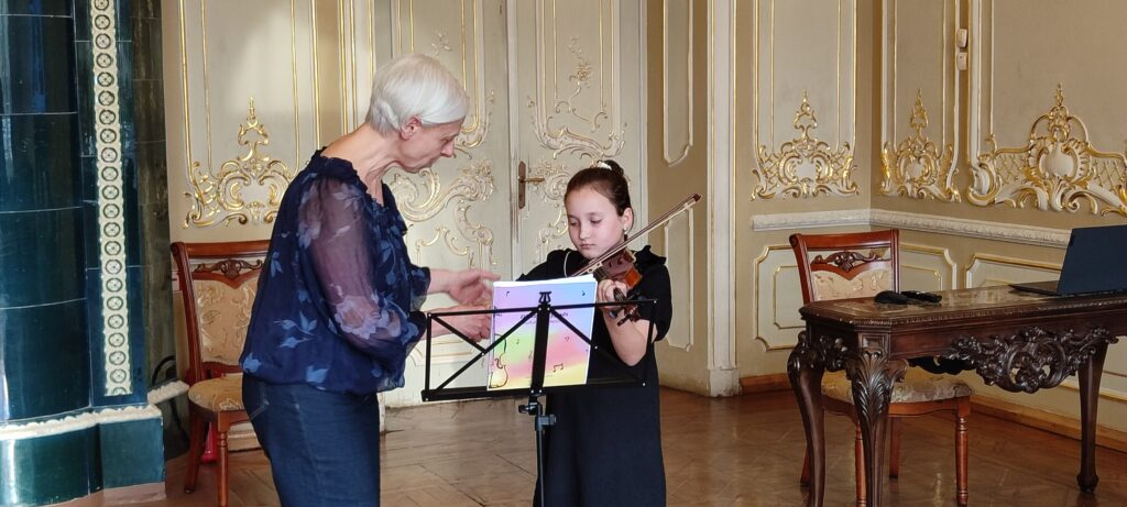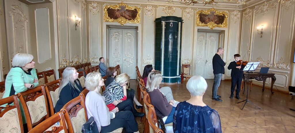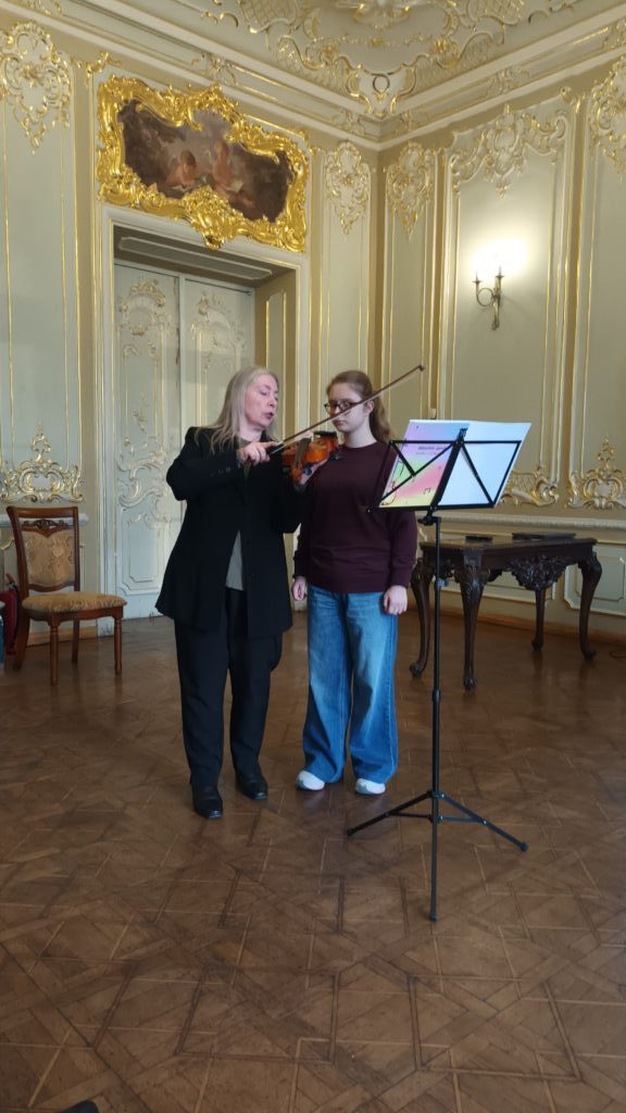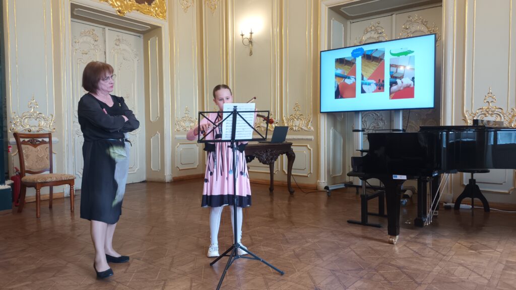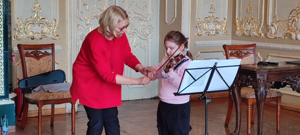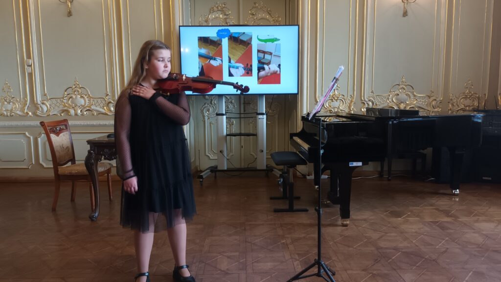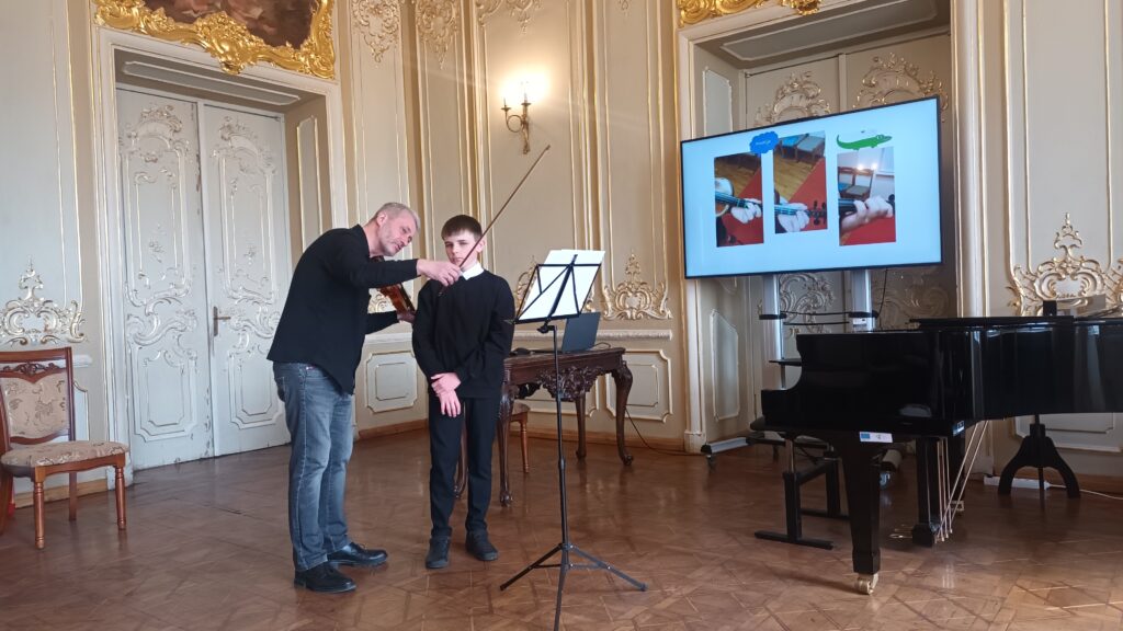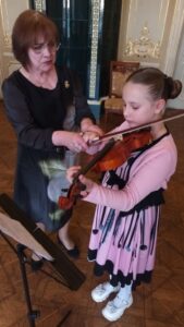 Atvirose pamokose dalyvavo Šalčininkų S. Moniuškos menų mokyklos mokytojų Daivos Gudelevičiūtės ir Viktorijos Mameniškienės smuiko klasės mokiniai.